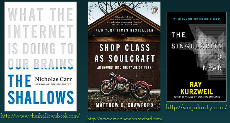 There were three key books I read in the past year that have clarified for me a direction we could head in educational technology. Ideas from each of those books, which at first appear to be in direct odds with each other, helped form the content of my ECOO presentation this year.