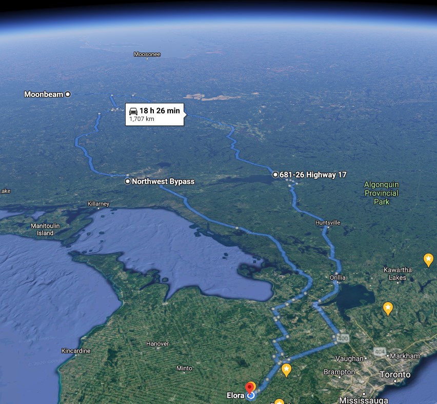 The mighty Wolfe Bonham did a Moonbeam run this year as a part of one of his mega well-beyond an Iron Butt long distance rides. I just popped it into Google maps and it happens to be a perfect first Iron Butt distance from home, and all in the province.