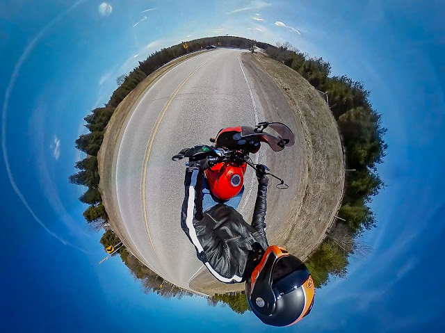 I’ve been asked how I manage to get on-motorcycle photos while riding, it isn’t with a drone! Here’s a quick how-to on taking striking action shots while you ride using a 360 camera attached to your bike using a flexible tripod. There are links at the bottom to other examples of on-bike 360 imaging.