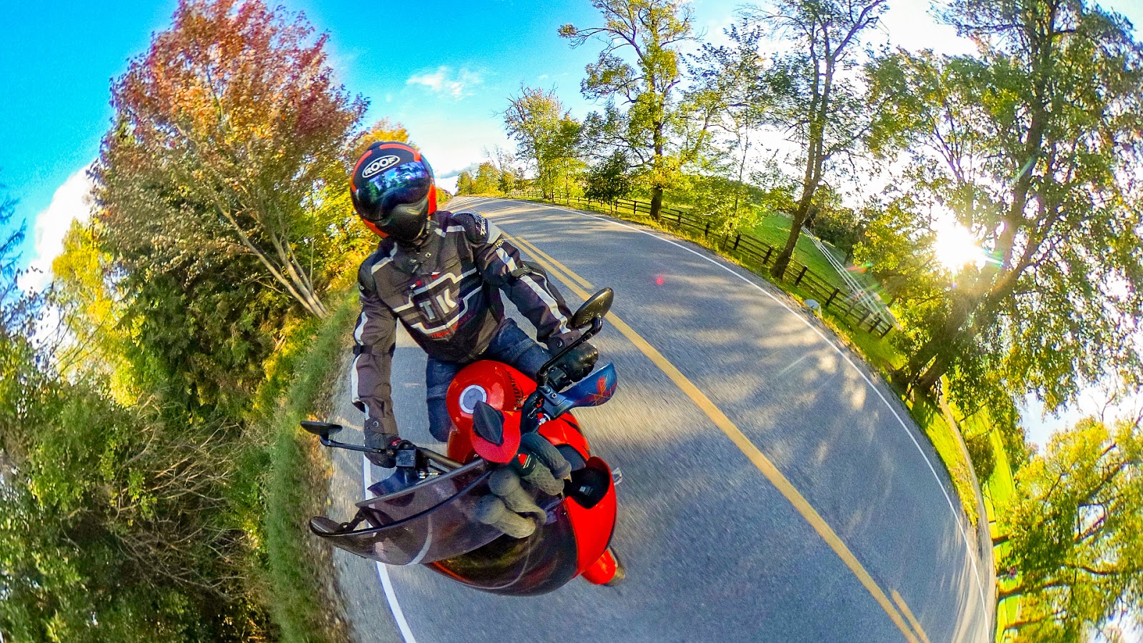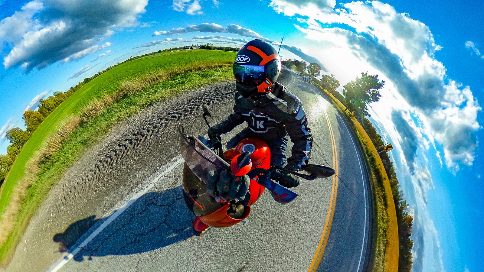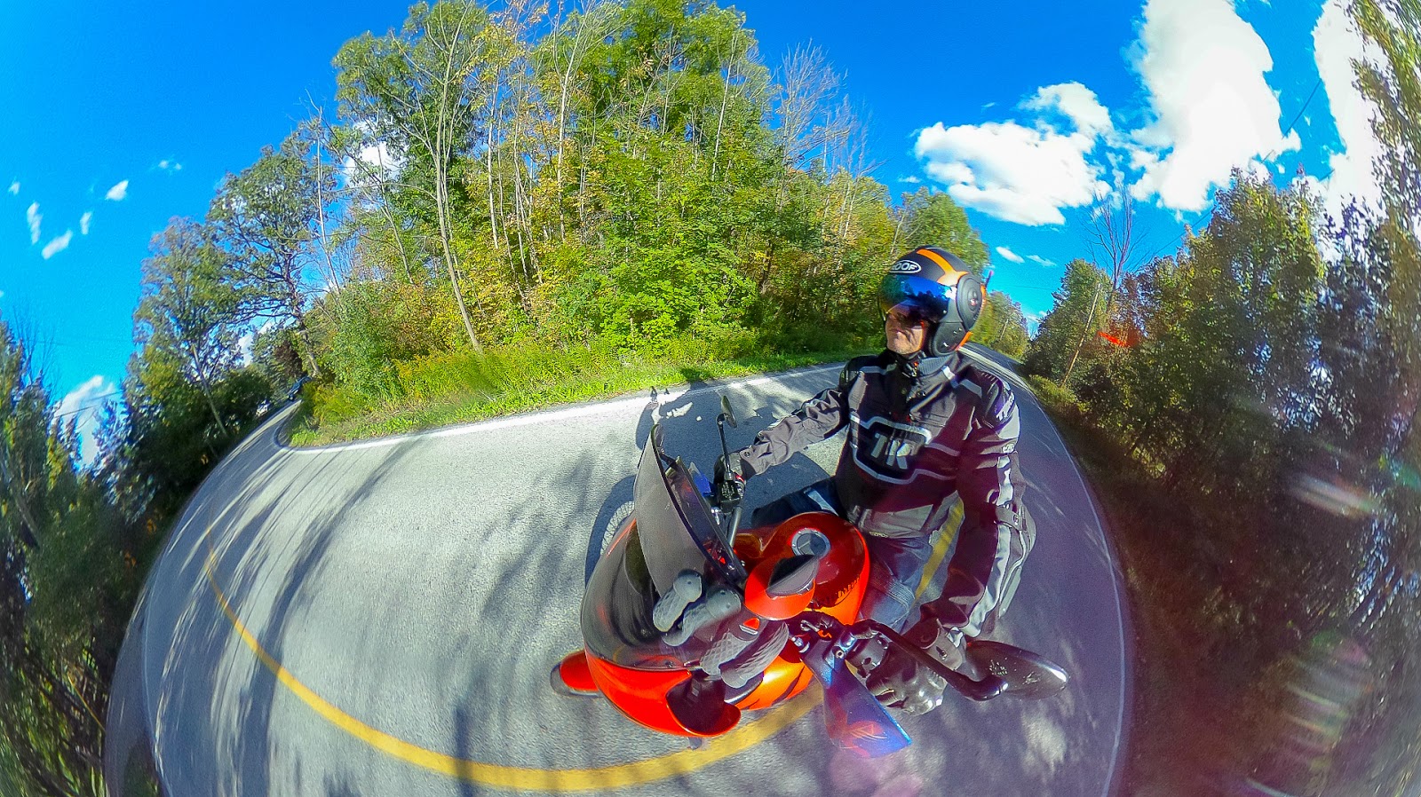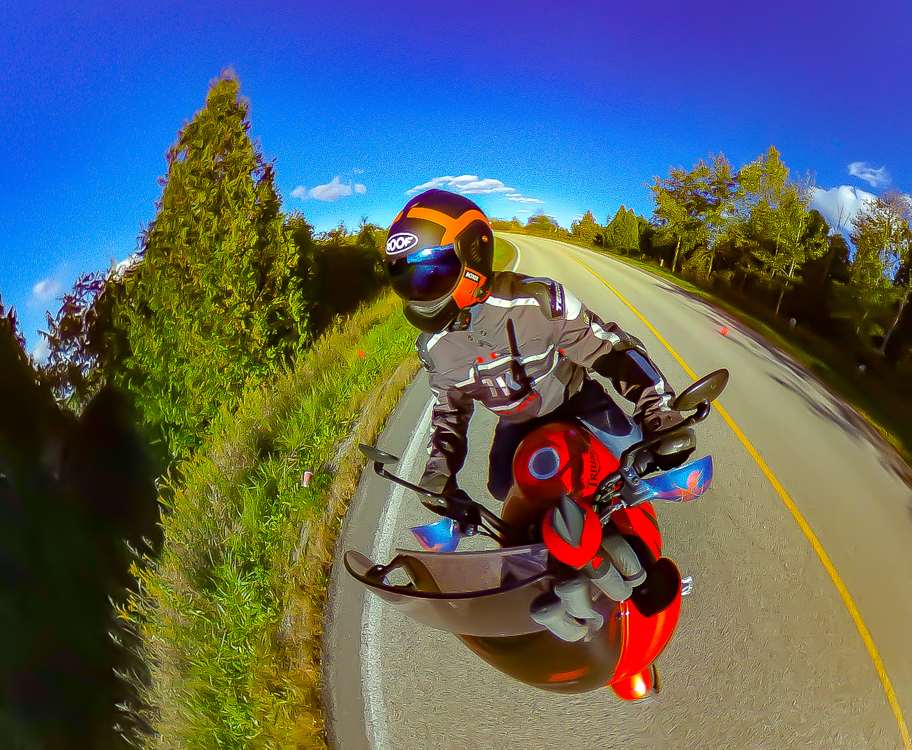 On bike photos were taken with the Ricoh Theta 360 camera attached to the windshield with Lammcou GoPro Phone flexible tripod. The camera was set via my smartphone to take a photo every 10 seconds. I then set and forgot about it and enjoyed the ride. If you’re curious about 360° on-bike shots, there are more details here.