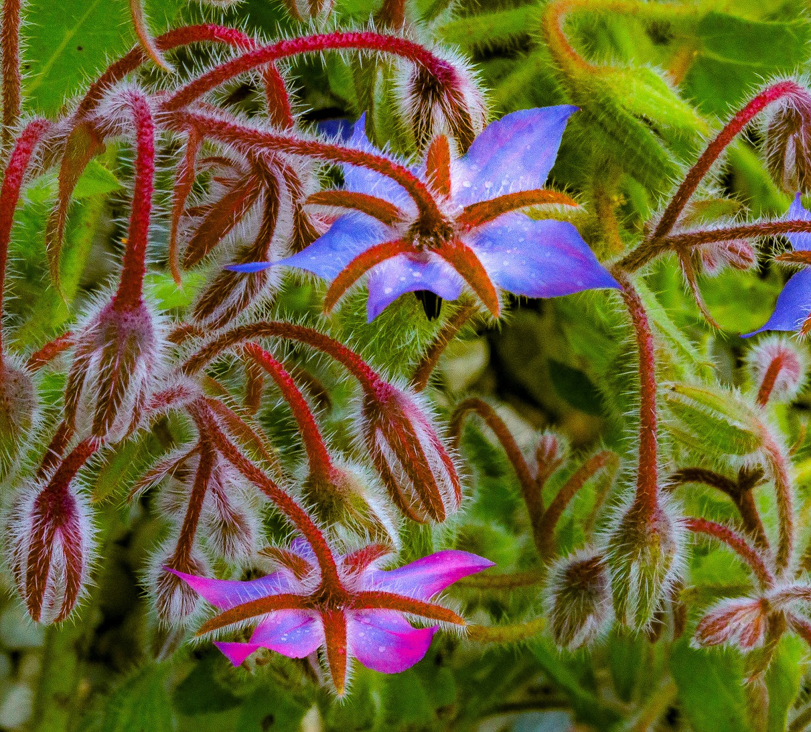Closeups were taken with the Canon T6i digital SLR using the Canon 50mm prime lens in the garden. The gourds at Dar’s Delights (good coffee, excellent donuts!) were taken with the OnePlus5 smartphone (which also remotely controlled the Ricoh). Editing was done in Adobe’s Lightroom which did well to pull details out of the darker riding photos.