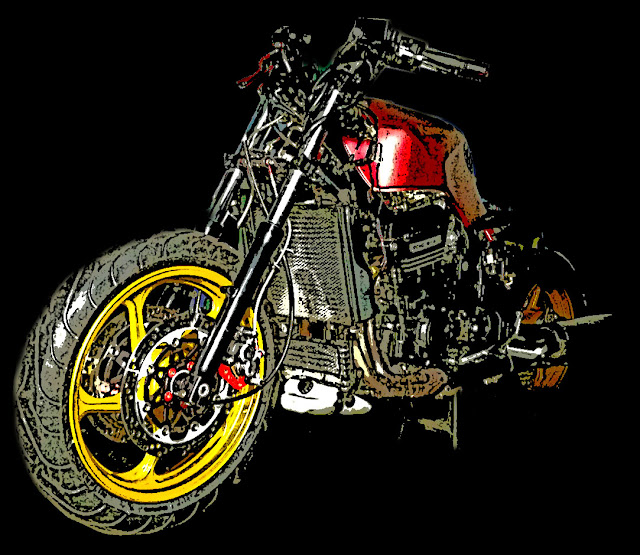 I’ve stripped down the Concours to the bare bones. From there I intend to build it back out into a cafe-racer/naked streetfighter. A bare-bones ZG1000 Concours looks pretty butch: