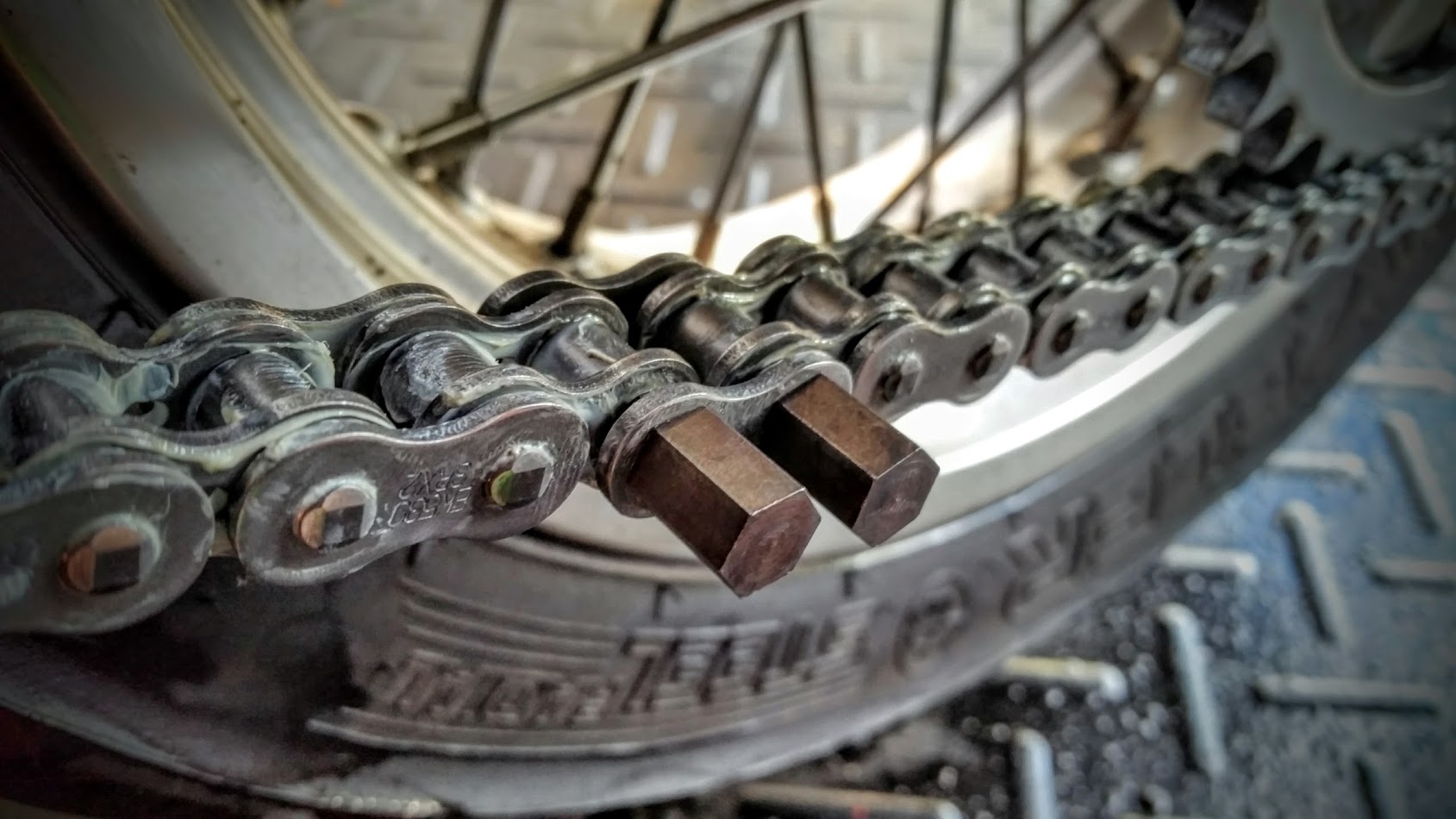 | A chain so new it’s still covered in the wax it was packaged in to stop rust. |
