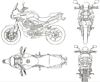 | Some home-made Versys diagrams of what a high/scrambler type exhaust might look like – it looks good! I have to wonder why Kawasaki never did this with the bike… |