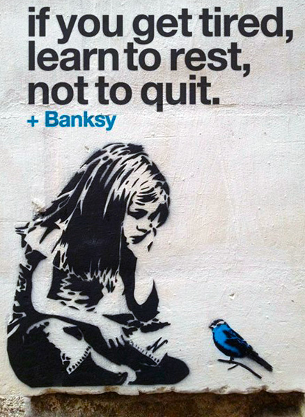 This is the fifth attempt at this post. Sometimes, reflecting your way out of dark place professionally takes some iteration. Previous attempts ended up heaping frustration on top of frustration until it seemed overwhelming again – not the best way to resolve a metaphysical crisis even if it is all true. I’m not the smartest, most upwardly mobile educator in the world, but I know my craft and I’m good at getting students to express their talents. I’m also effective under fire and can always find a way to get back on my feet again when the going gets tough. This year has been a test of that resilience and at times it has broken me, but reflecting on a year where Ontario education has lost the plot more than once has me thinking about a Banksy piece: