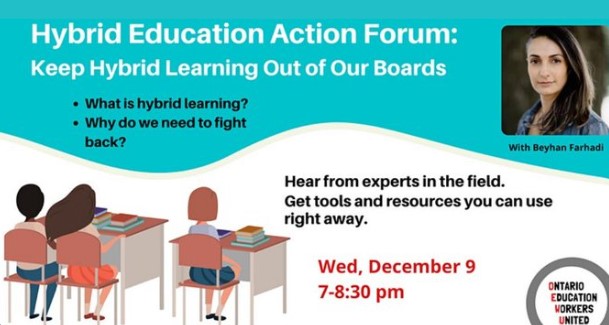 This came into focus in November when we watched Ontario Education Workers United’s live webcast on how to stop the ‘pedagogically impoverished‘ hybrid/simultaneous online and face to face learning model. I’ve had a go at this unsustainable and problematic smoke screen of an approach on Dusty World previously. There was a great deal of dissonance in listening to educational experts like Doctor Beyhan Farhadi talking about pedagogy when the system itself seems to have turned its back on it entirely.