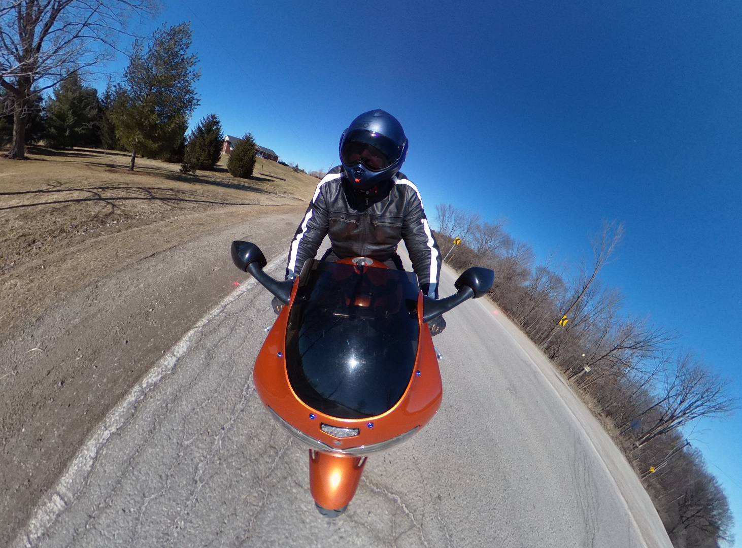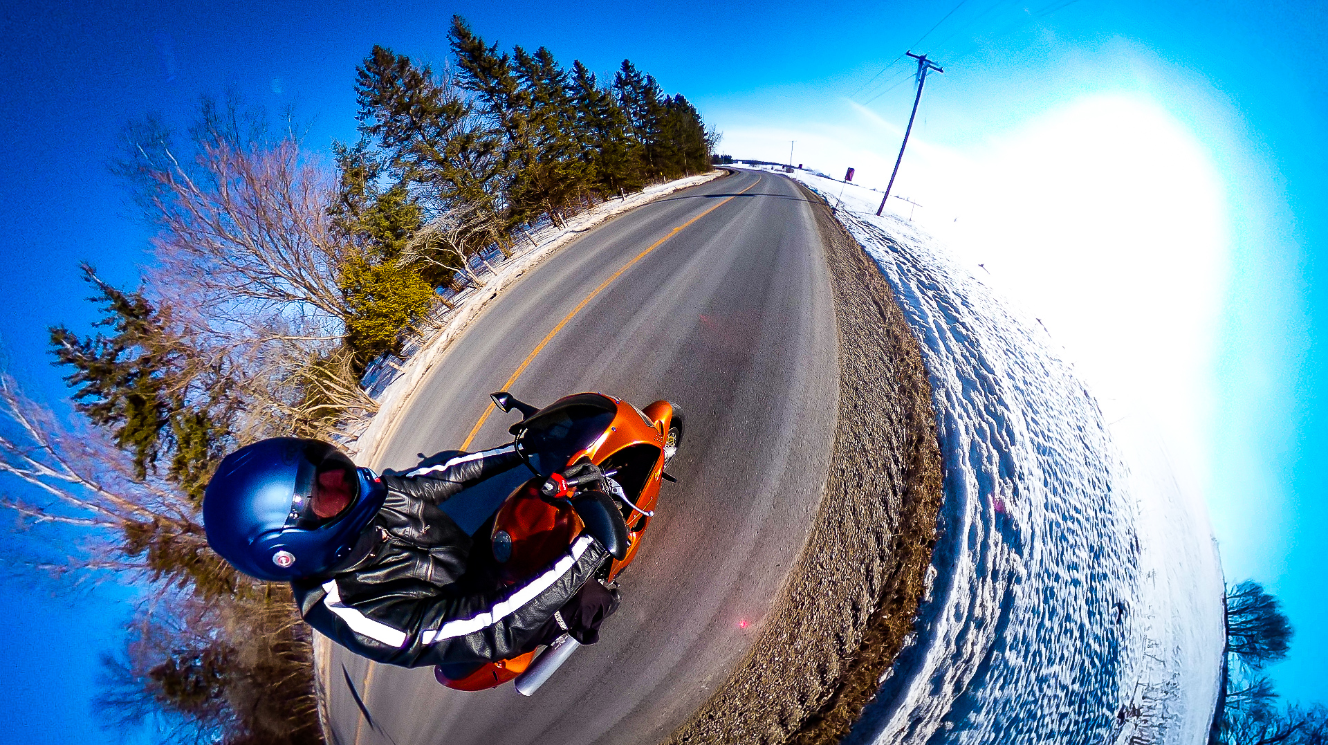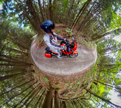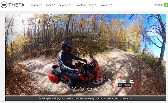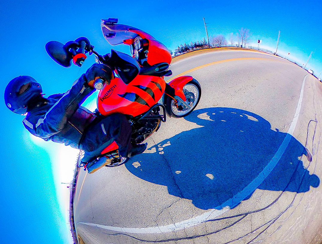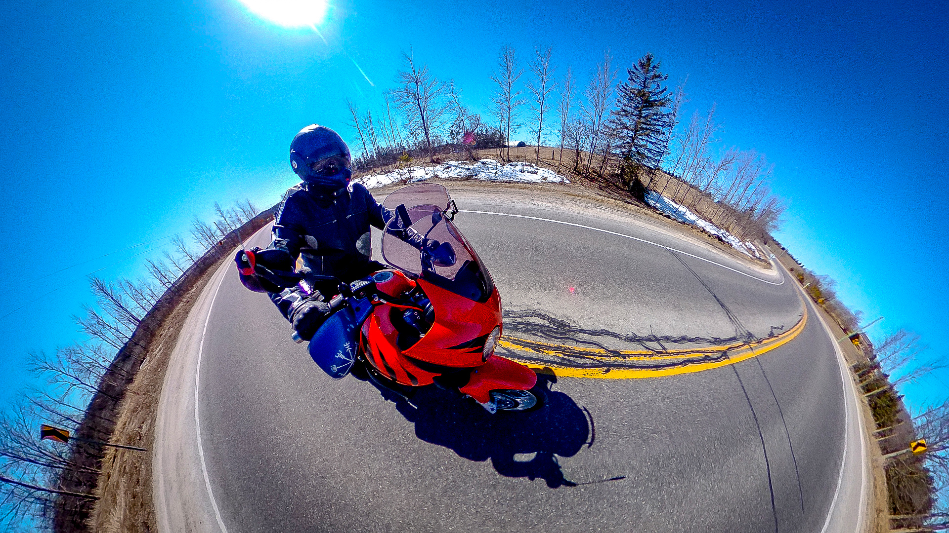 On bike photos were taken with the Ricoh Theta 360 camera attached to the windshield with Lammcou GoPro Phone flexible tripod. The camera was set via my smartphone to take a photo every 10 seconds. I then set and forgot about it and enjoyed the ride. If you’re curious about 360° on-bike shots, there are more details here.