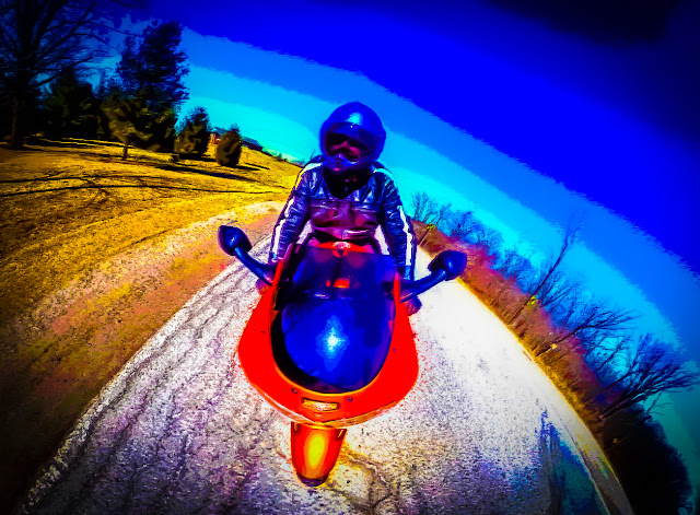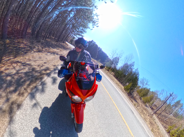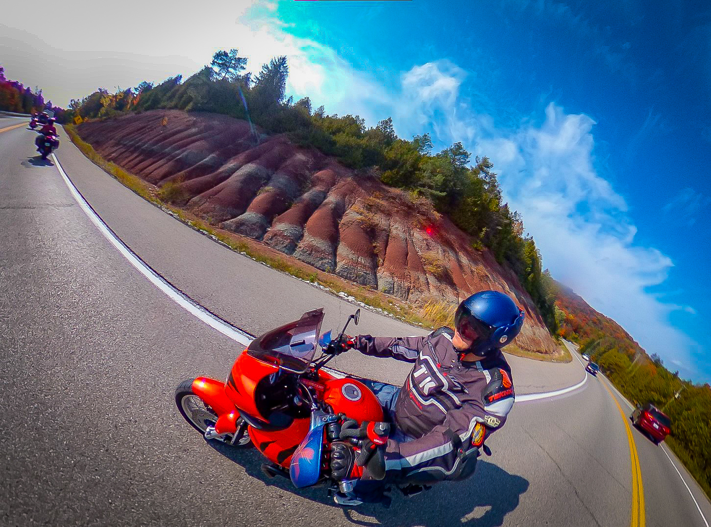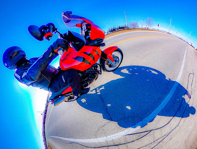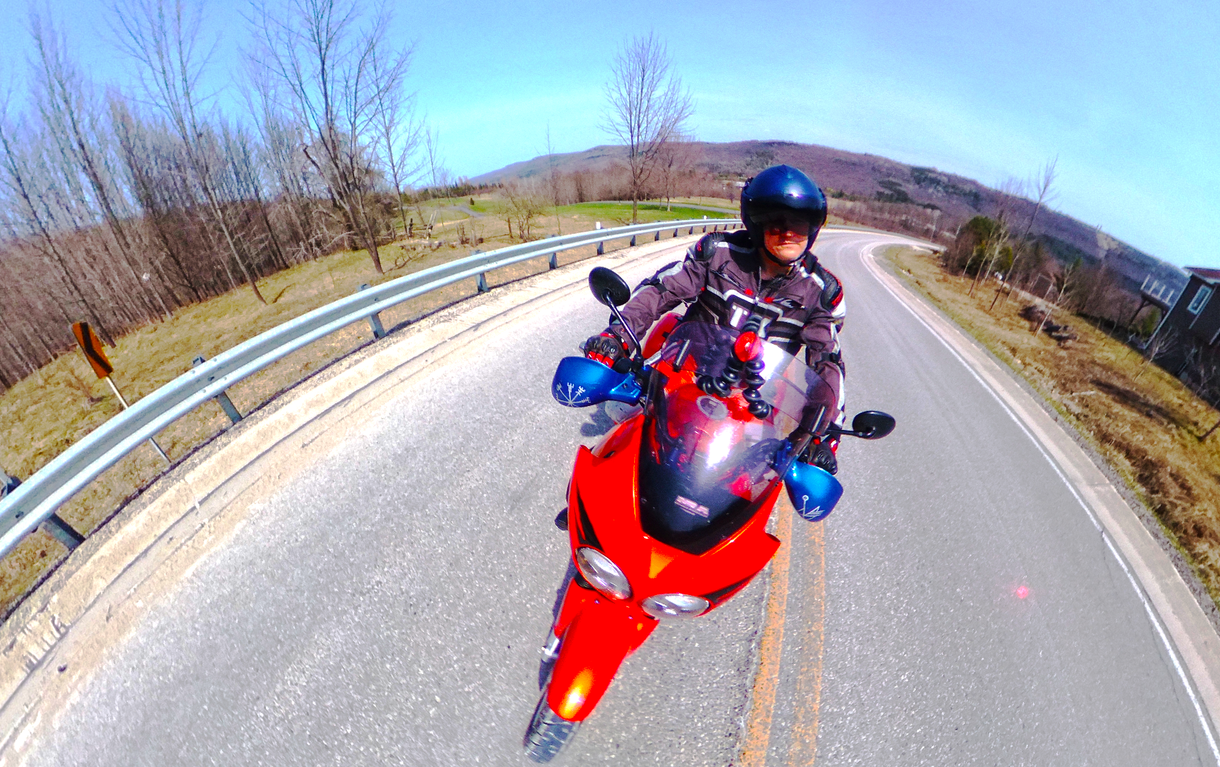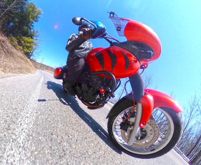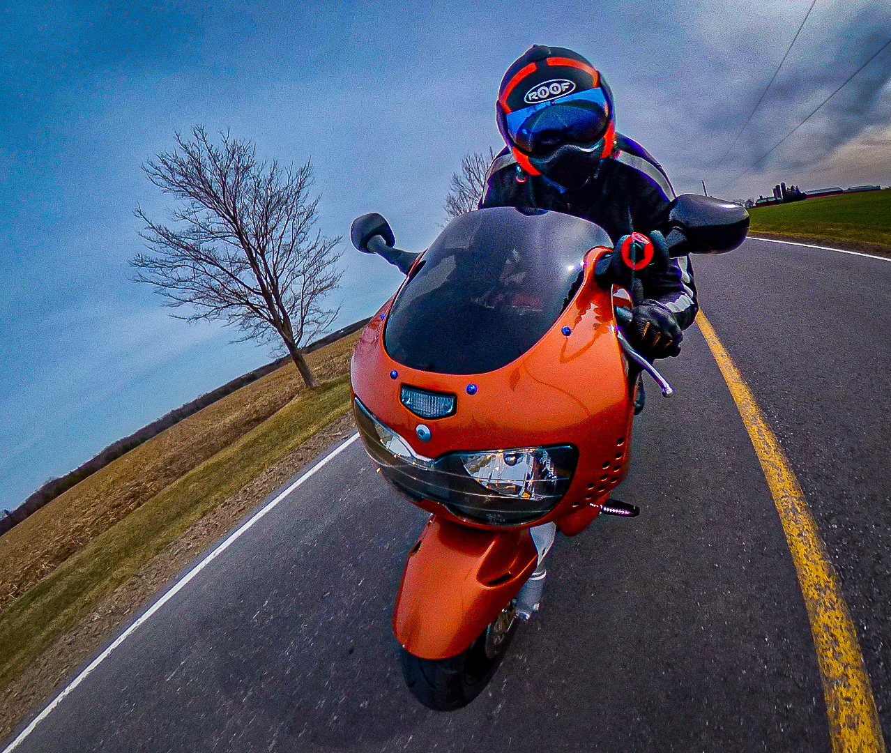 On bike photos were taken with the Ricoh Theta 360 camera attached to the windshield with Lammcou GoPro Phone flexible tripod. The camera was set via my smartphone to take a photo every 10 seconds. I then set and forgot about it and enjoyed the ride. If you’re curious about 360° on-bike shots, there are more details here.