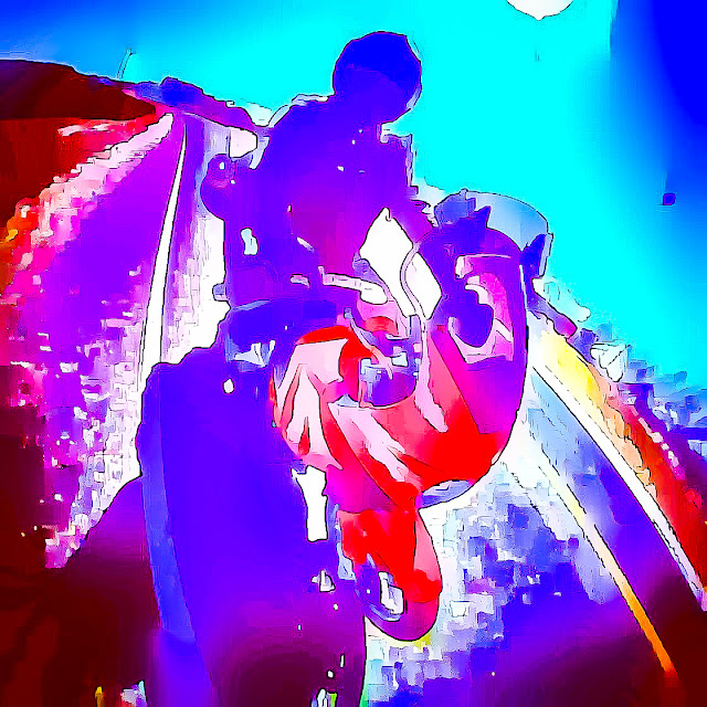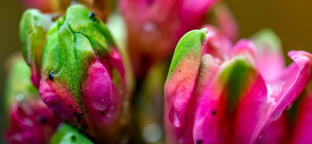 Closeups were taken with the Canon T6i digital SLR using the Canon 50mm prime lens in the garden. The gourds at Dar’s Delights (good coffee, excellent donuts!) were taken with the OnePlus5 smartphone (which also remotely controlled the Ricoh). Editing was done in Adobe’s Lightroom which did well to pull details out of the darker riding photos.