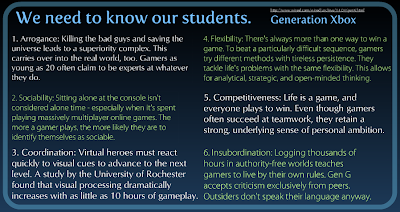 This brought me back to an article I read in WIRED a long time ago called Generation Xbox wherein they talked about the culture of gaming in such a forthright way that it stuck with me. Anyone who has been teaching kids in the last ten years will see a lot of truth in these observations.